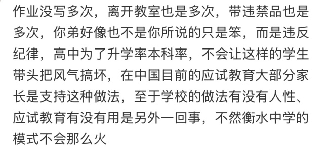 网友们对此事看法不一。一些网友认为学校有自己的规范制度,从考核表可以看出,苏先生弟弟的学习行为和态度问题比较严重,劝退处分并无不当。另一些网友则认为考核制度过于繁杂,仅看考核表,苏先生弟弟没有重大过错,劝退处理过于苛刻。