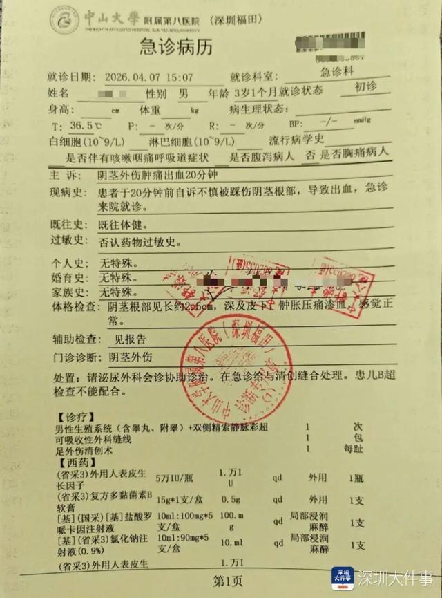 近日,一名3岁男童在深圳福田区卓悦中心奈尔宝家庭中心游玩时,疑遭陌生成年男子故意袭击,导致生殖器根部出现2.5厘米撕裂伤,缝合6针。家属表示,伤情被鉴定为轻伤二级,警方已立案侦查。