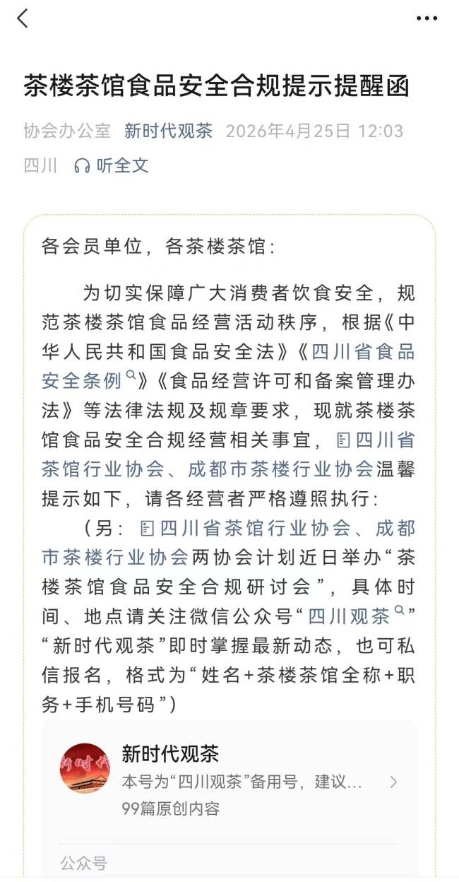 当地监管部门已介入调查。成都市茶楼行业协会执行会长表示,协会将召开研讨会,邀请监管部门和律师共同参与,从合规指导、维权路径等多维度为商家提供解决方案,并提供法律层面的指导意见。