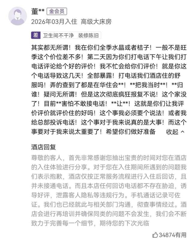 - 华住会回应因回访电话引家庭纠纷 正常流程未泄隐私