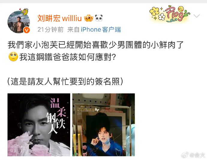 好神奇的的感觉,小泡芙追星贺峻霖,爸爸刘畊宏还给她要到了签名照。